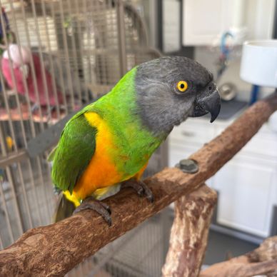 Mango, a senegal parrot, was surrendered in early 2025. He can be a bit unpredictable and would need someone who has patience and is an experienced bird owner. We think he would be an amazing bird once he has gained trust with someone.